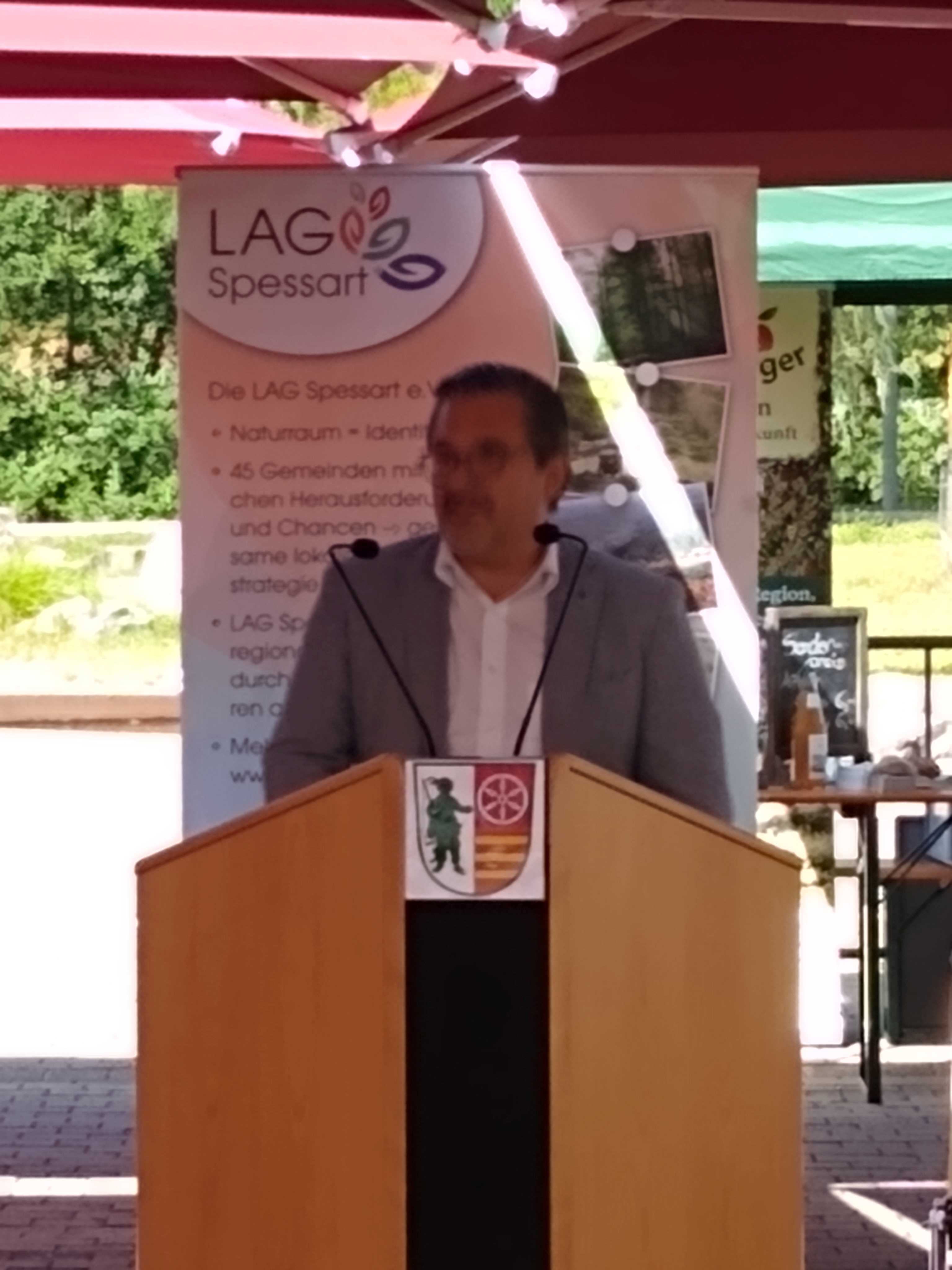 In ihren Grußworten blickten sowohl der Bürgermeister von Frammersbach Christian Holzemer, die 1. Vorsitzende der LAG Spessart Marianne Krohnen, die Landrätin des Landkreises Main-Spessart Sabine Sitter sowie der LEADER-Koordinator für Unterfranken Daniel Klaehre vom AELF Bad Neustadt auf die letzten 10 Jahre und die Erfolgsgeschichte der LAG Spessart zurück. Gleichzeitig wurde der Blick aber auch nach vorne gerichtet und der LAG Spessart und dem Förderprogramm LEADER eine weiterhin gute Entwicklung gewünscht.