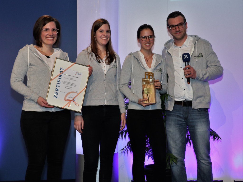 Das LEADER-Kooperationsprojekt "Wald erFahren" ist vom ADFC Bayern mit dem "Goldenen Pedal 2018" in der Kategorie "Beste Radtourismus Serviceidee" ausgezeichnet worden. Das Projektteam konnte am 23.2.2018 in München den Preis entgegennehmen.